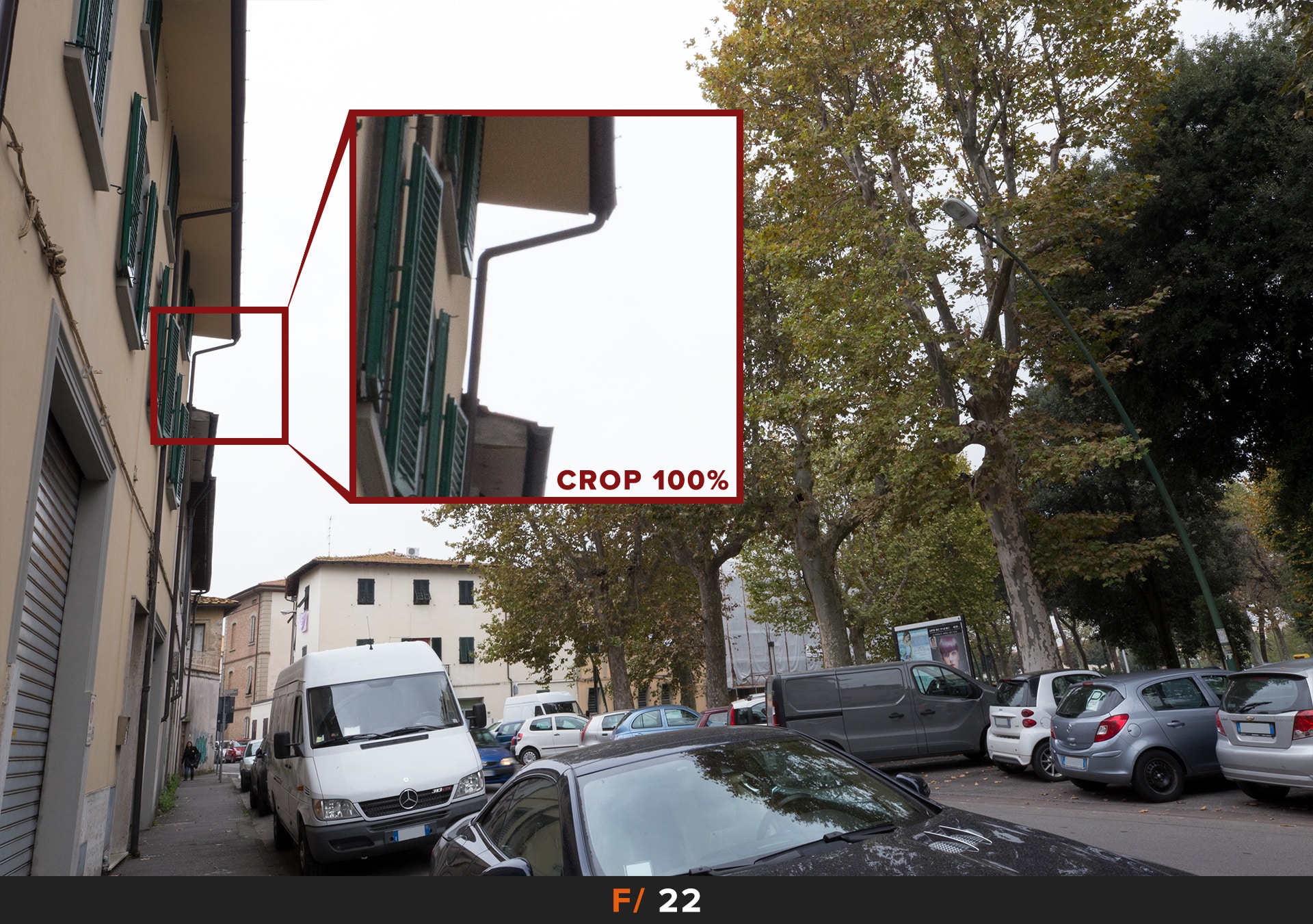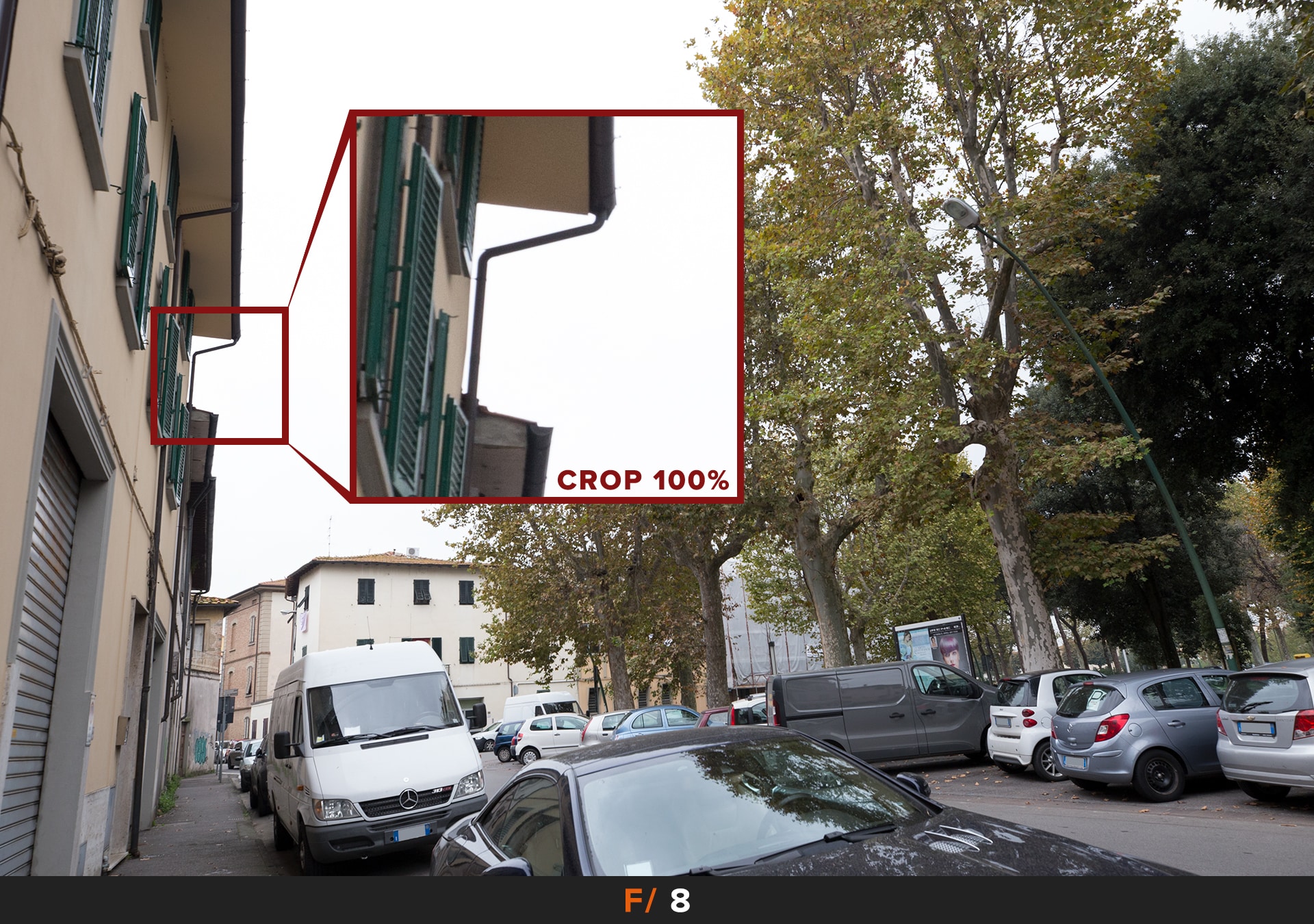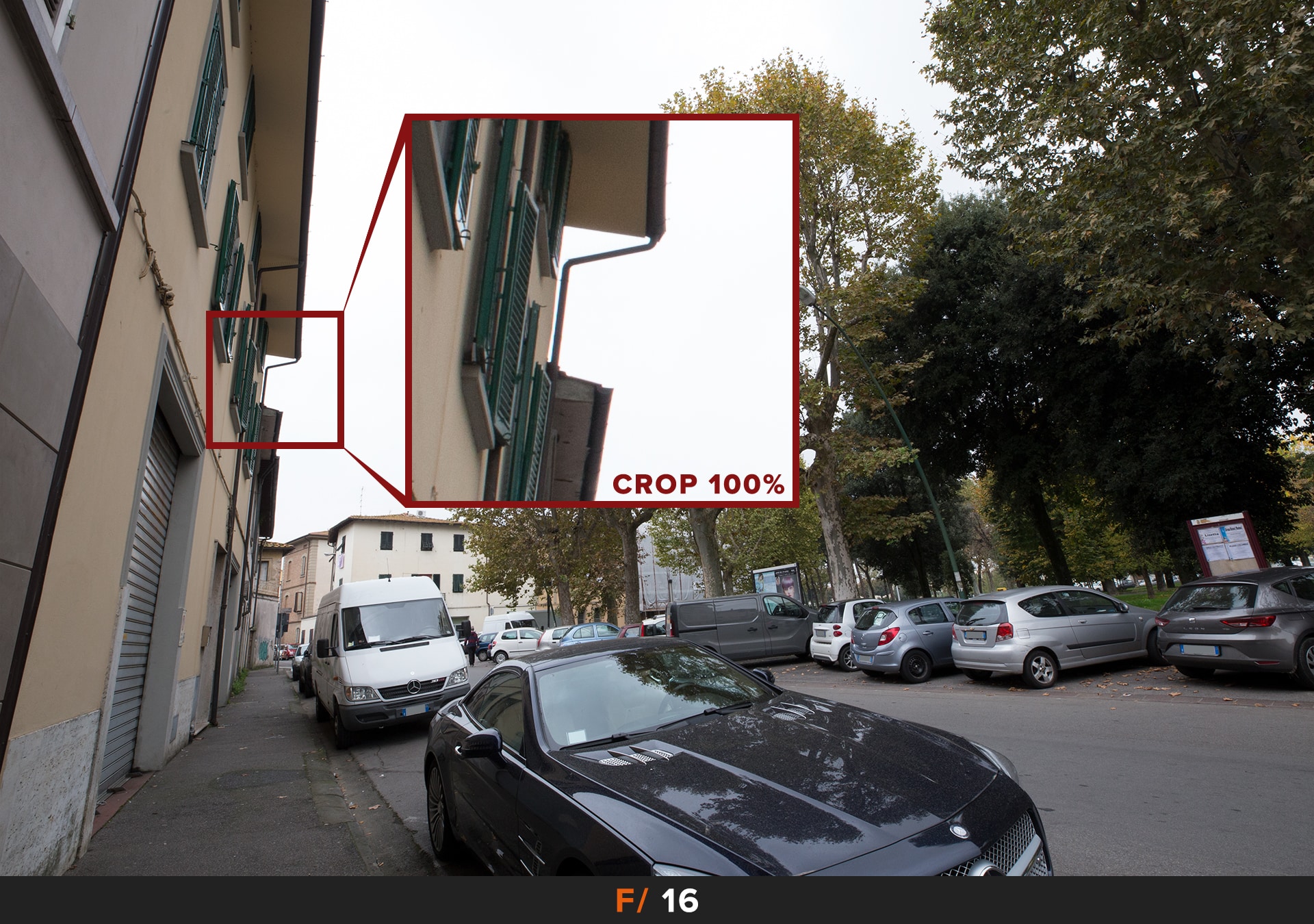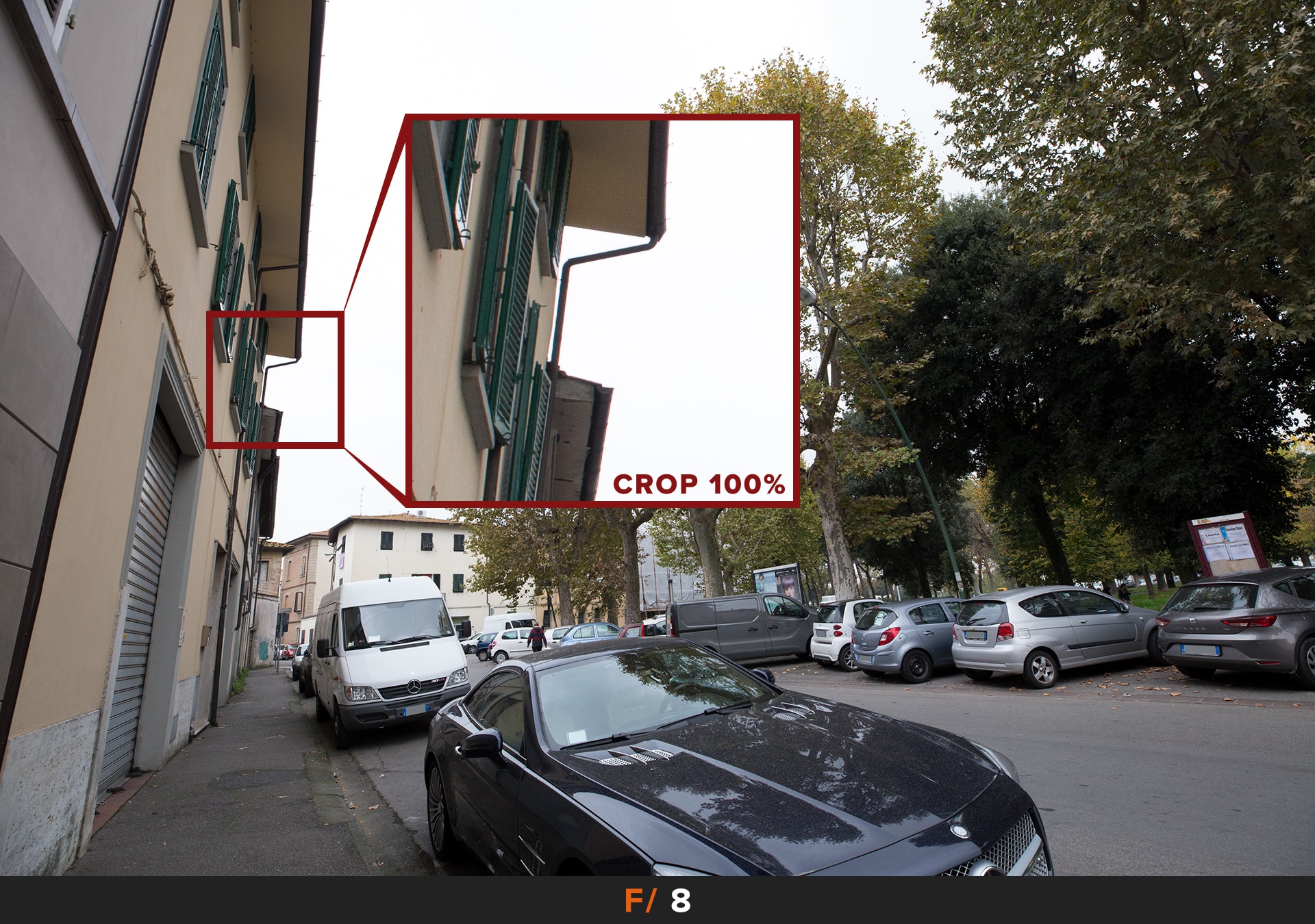 Per migliorare le cose dobbiamo chiudere il diaframma, i primi risultati accettabili li abbiamo a f/5.6 dove rimane un leggero accenno di questo disturbo agli angoli. Se vogliamo avere foto perfette allora dobbiamo chiudere ulteriormante a f/8.