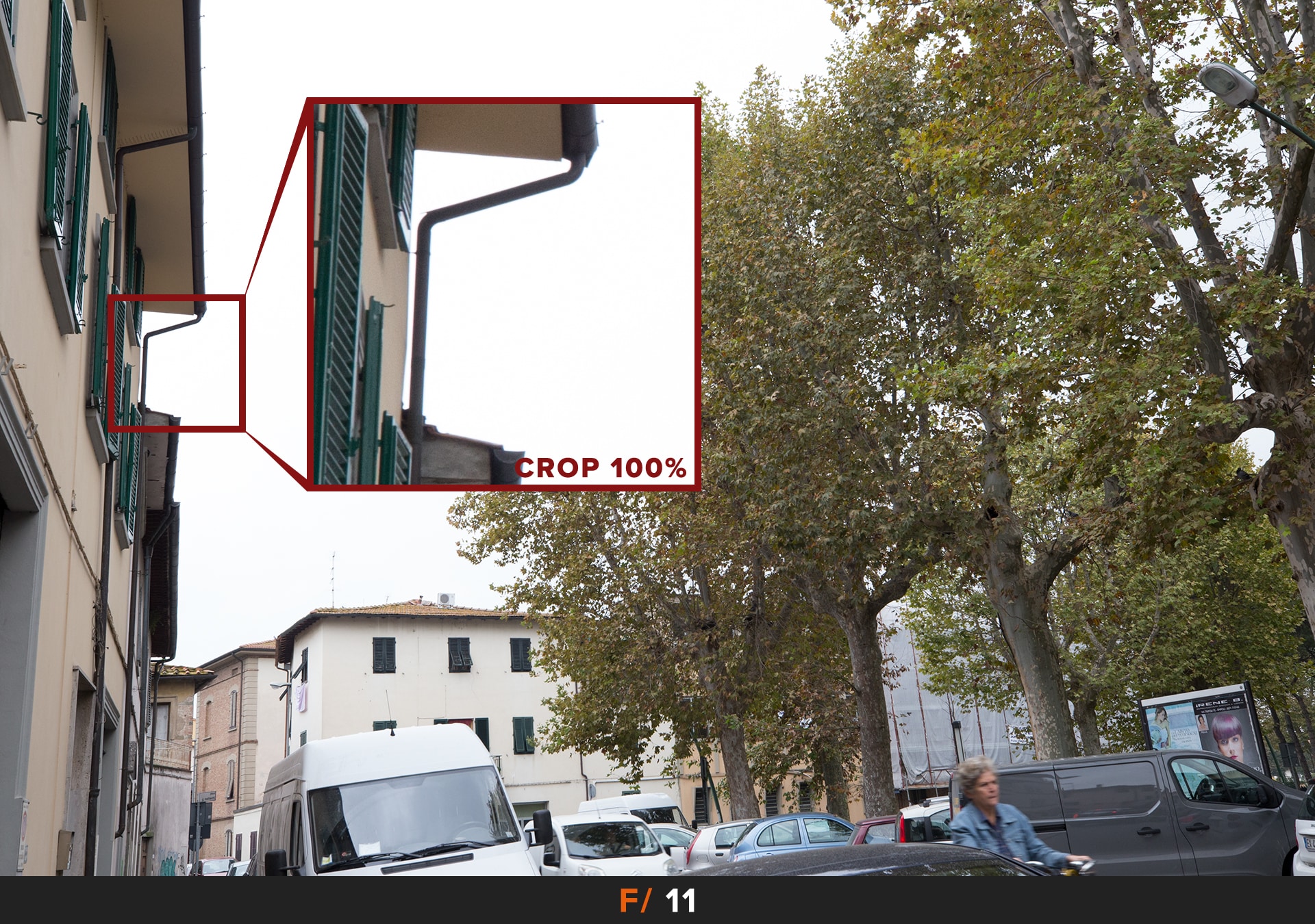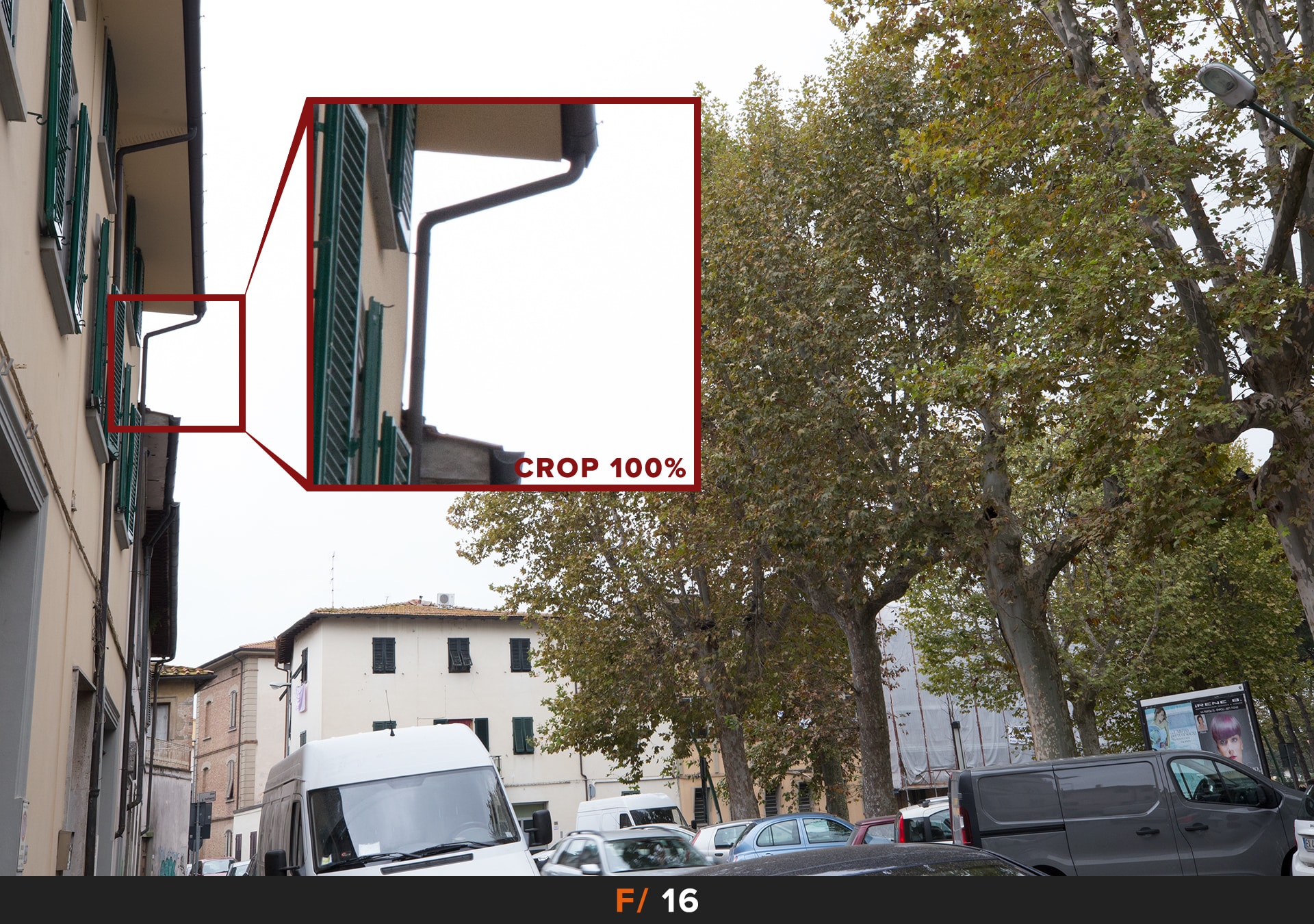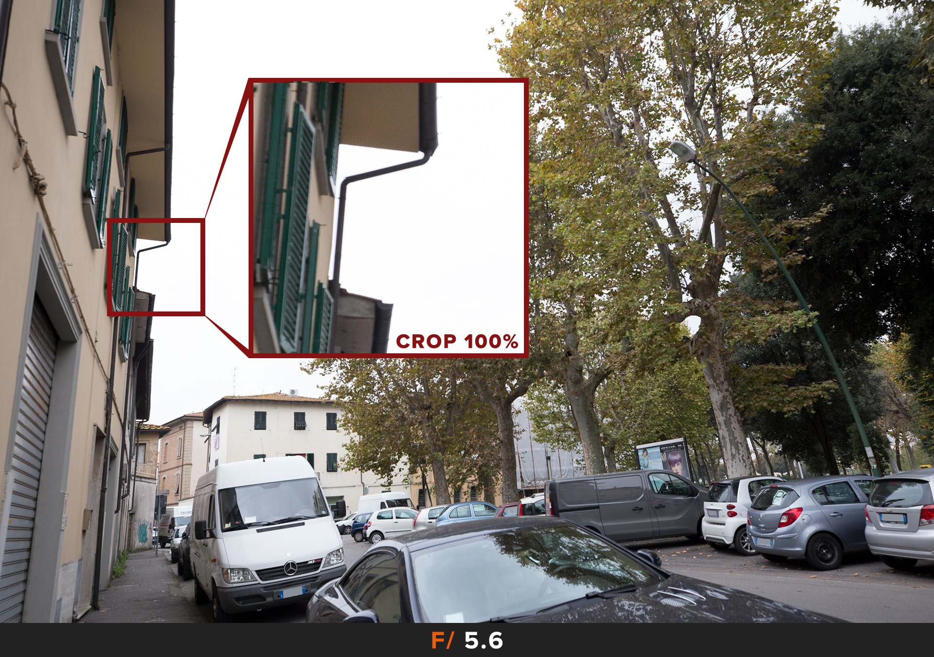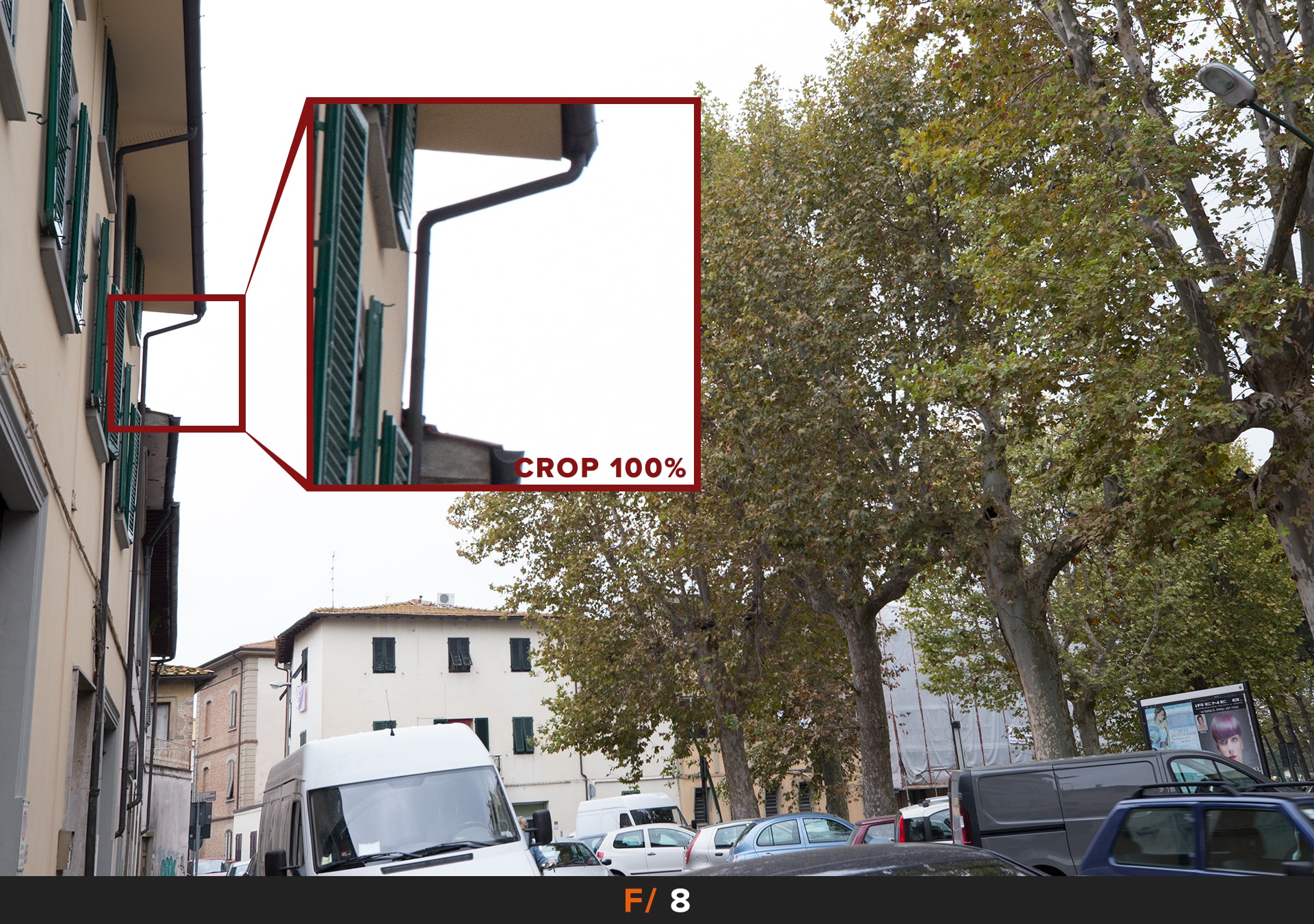Per migliorare le cose dobbiamo chiudere il diaframma, i primi risultati accettabili li abbiamo a f/5.6 dove rimane un leggero accenno di questo disturbo agli angoli. Se vogliamo avere foto perfette allora dobbiamo chiudere ulteriormante a f/8.