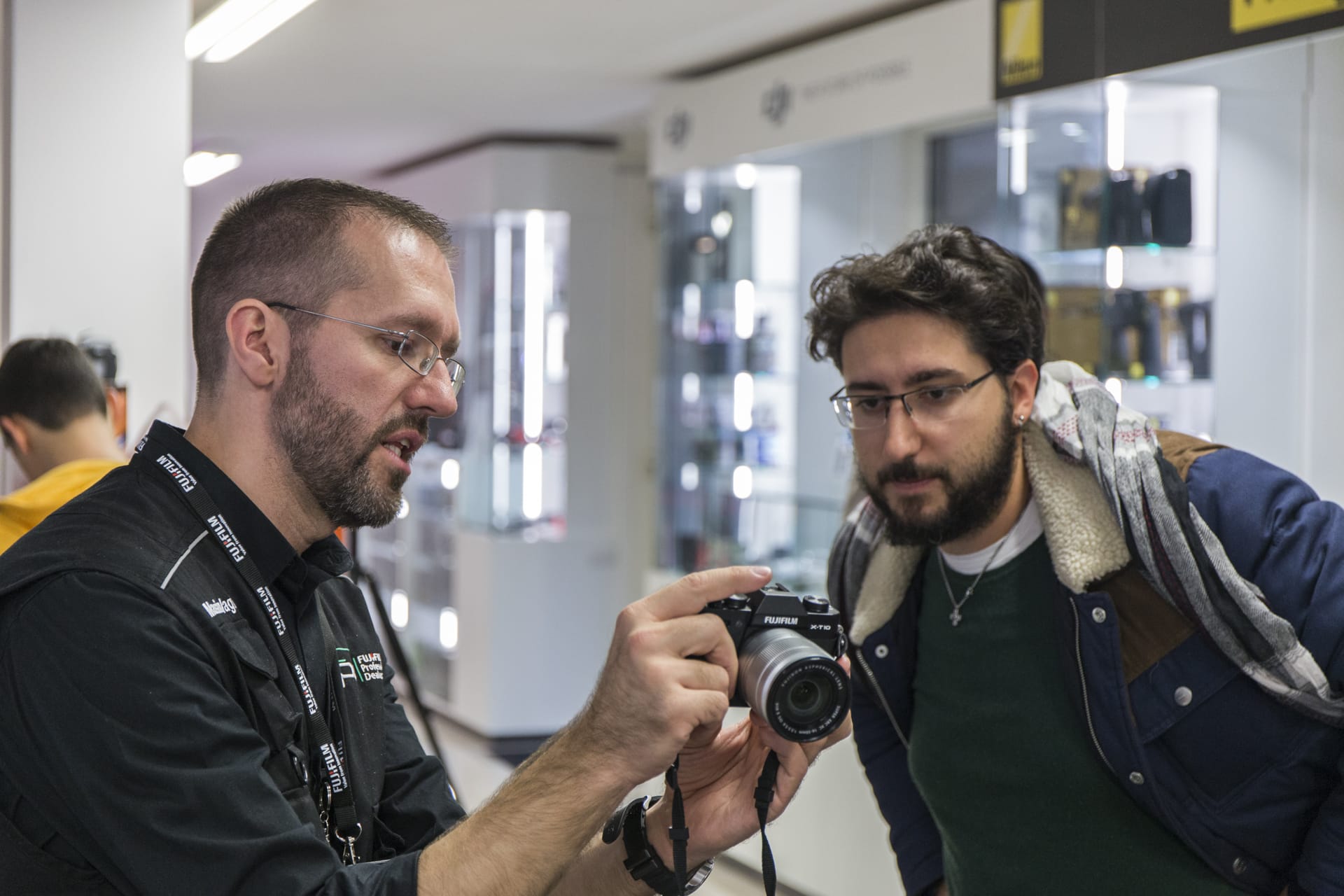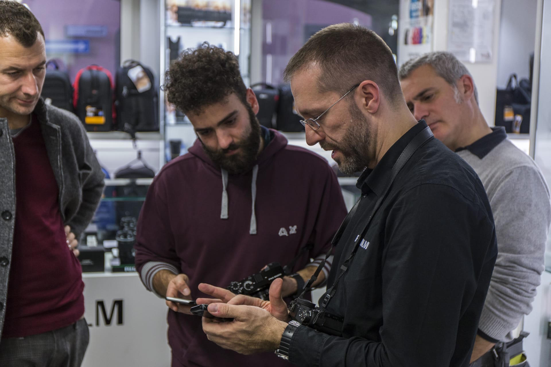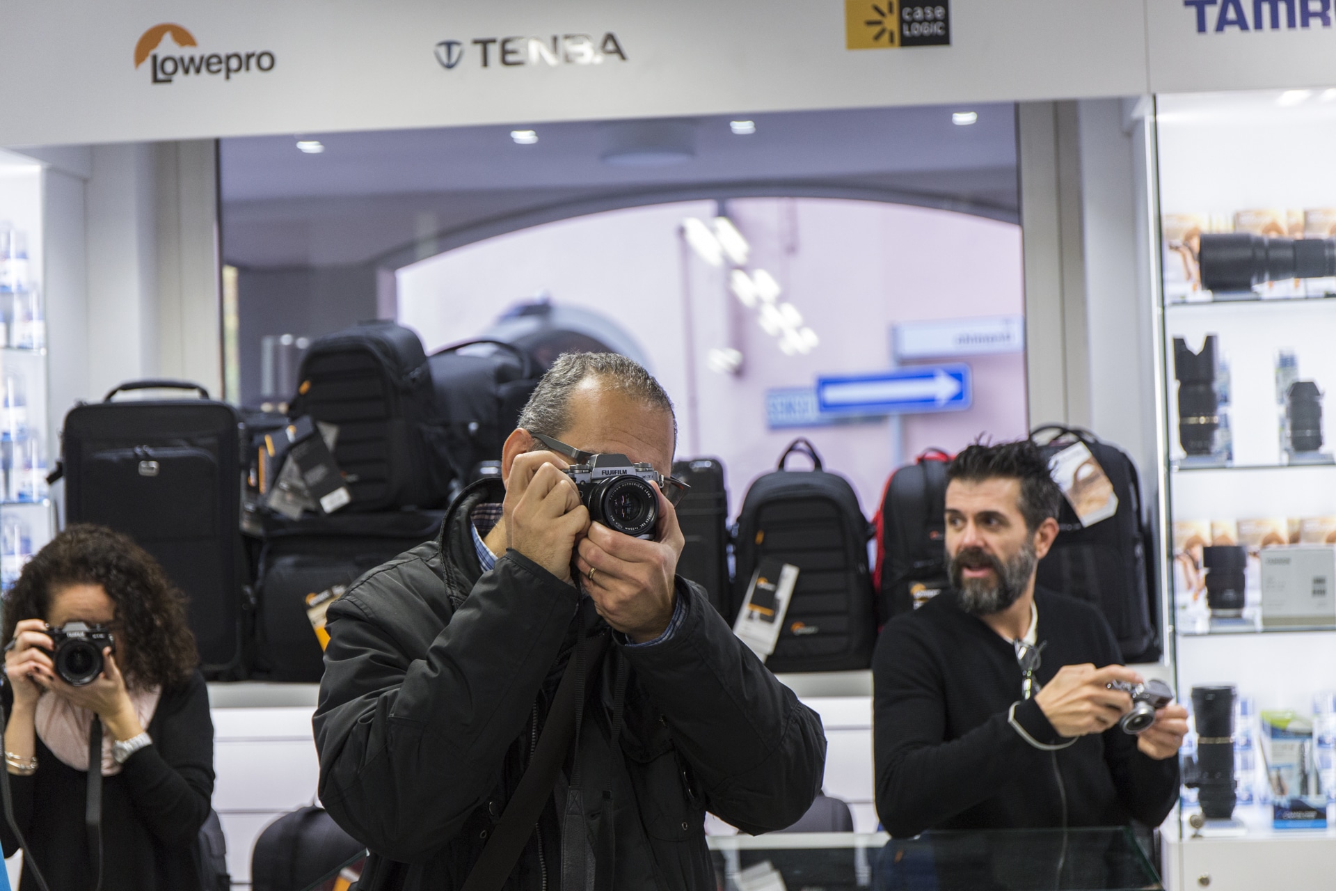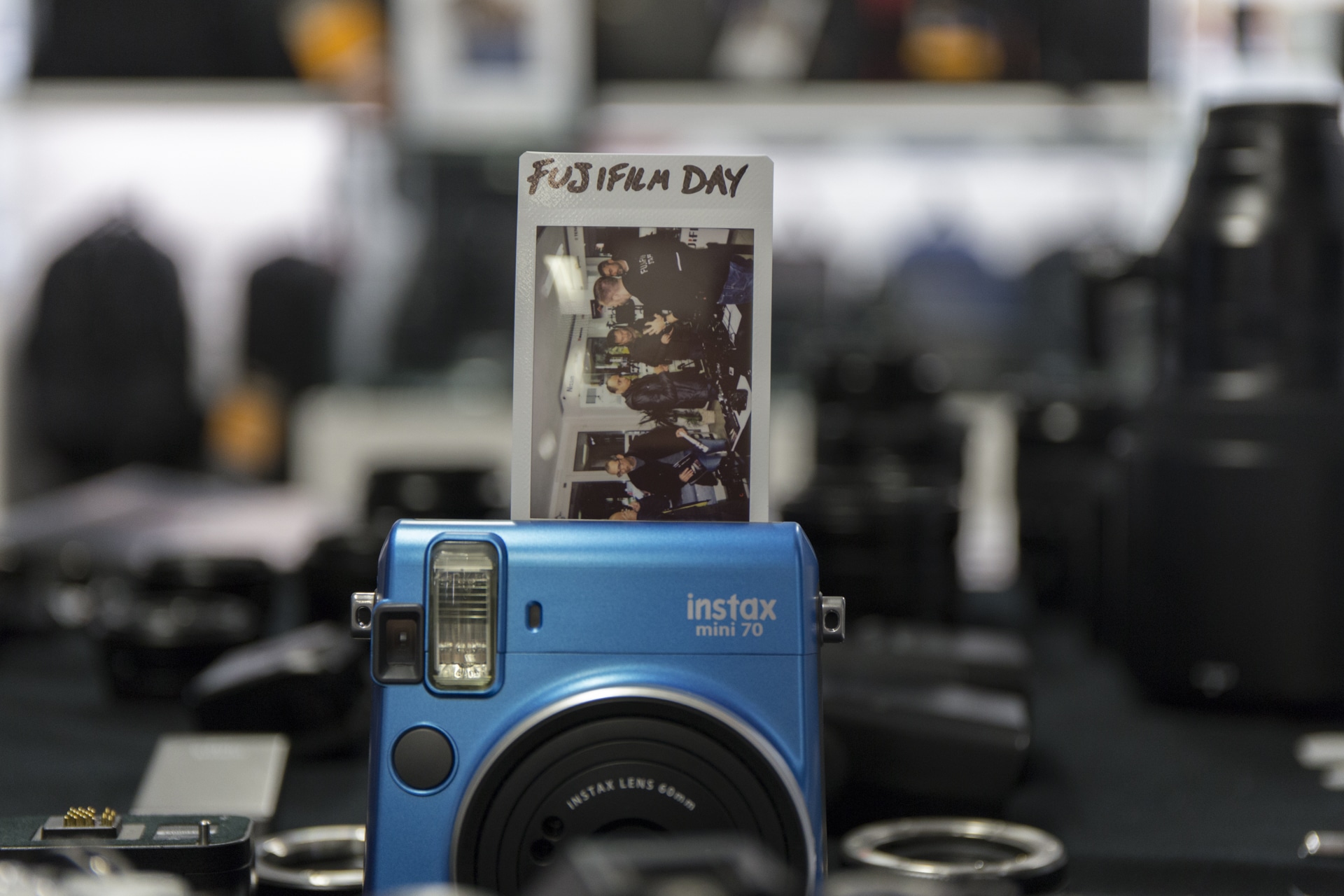 Molti i curiosi venuti a provare i vari dispositivi, infatti è stata la giornata con la maggior affluenza fino ad ora. Personlamente mi ha fatto piacere vedere che i nostri clienti non sono dei “conservatori” ma, al contrario, sono interessati a questi nuovi modelli di fotocamera, le mirrorless. Oltre a tutte la fotocamere digitali sul tavolo, anche se è stata un po’ trascurata, era presente la FujiFilm Instax Mini 70, una delle nuove fotocamere istantanee dell’azienda.