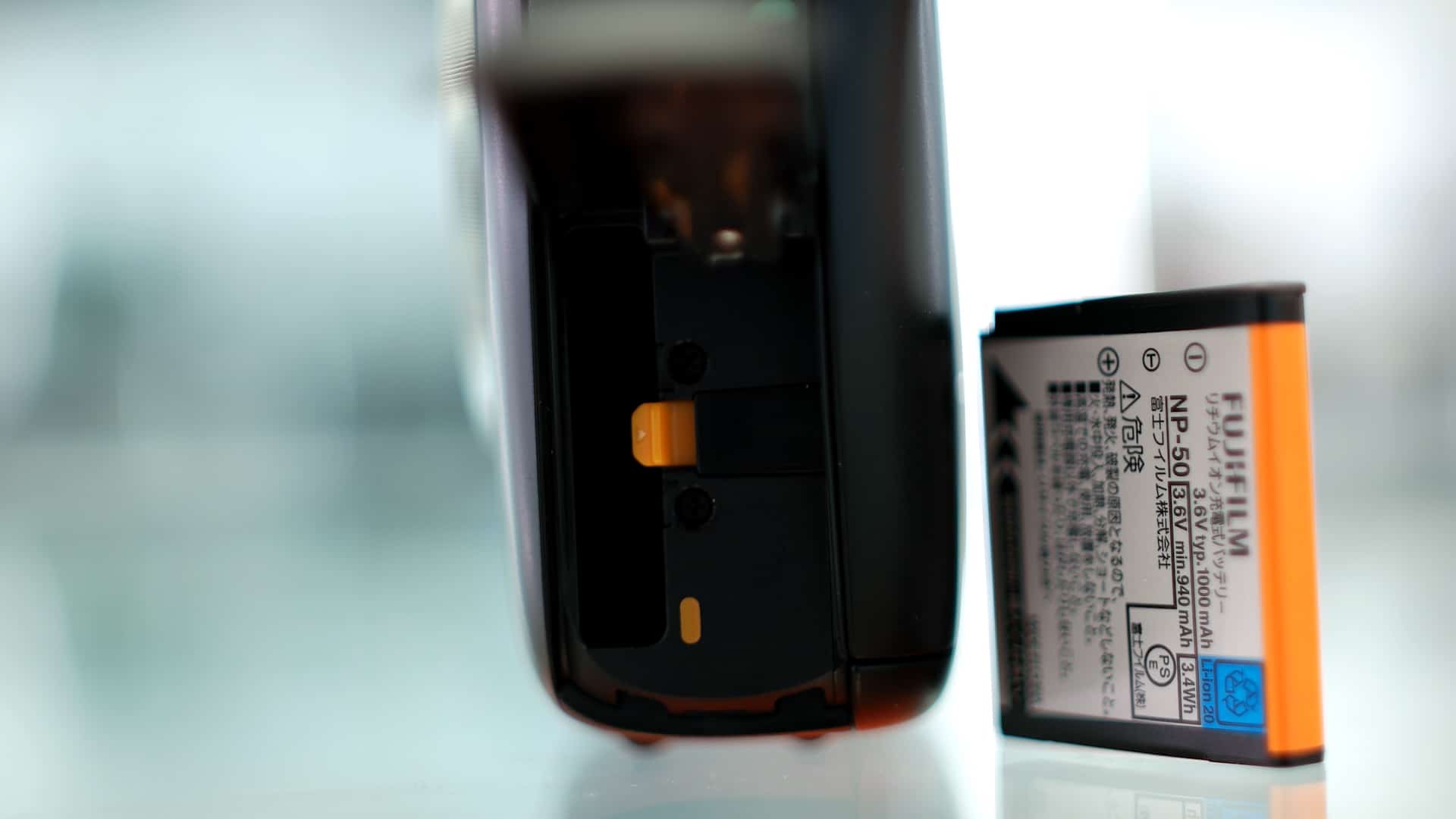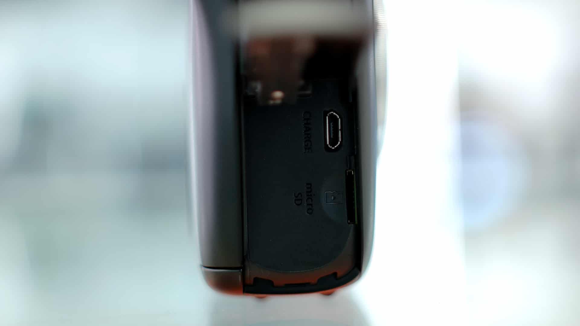 A lato del corpo macchina, sulla destra, troviamo il vano per la micro SD ed una porta micro USB; dall’altra parte invece abbiamo il vano per la batteria ricaricabile (una semplice FujiFilm NP-50) e lo switch per decidere se sviluppare automaticamente ogni foto scattata o se salvare in memoria.