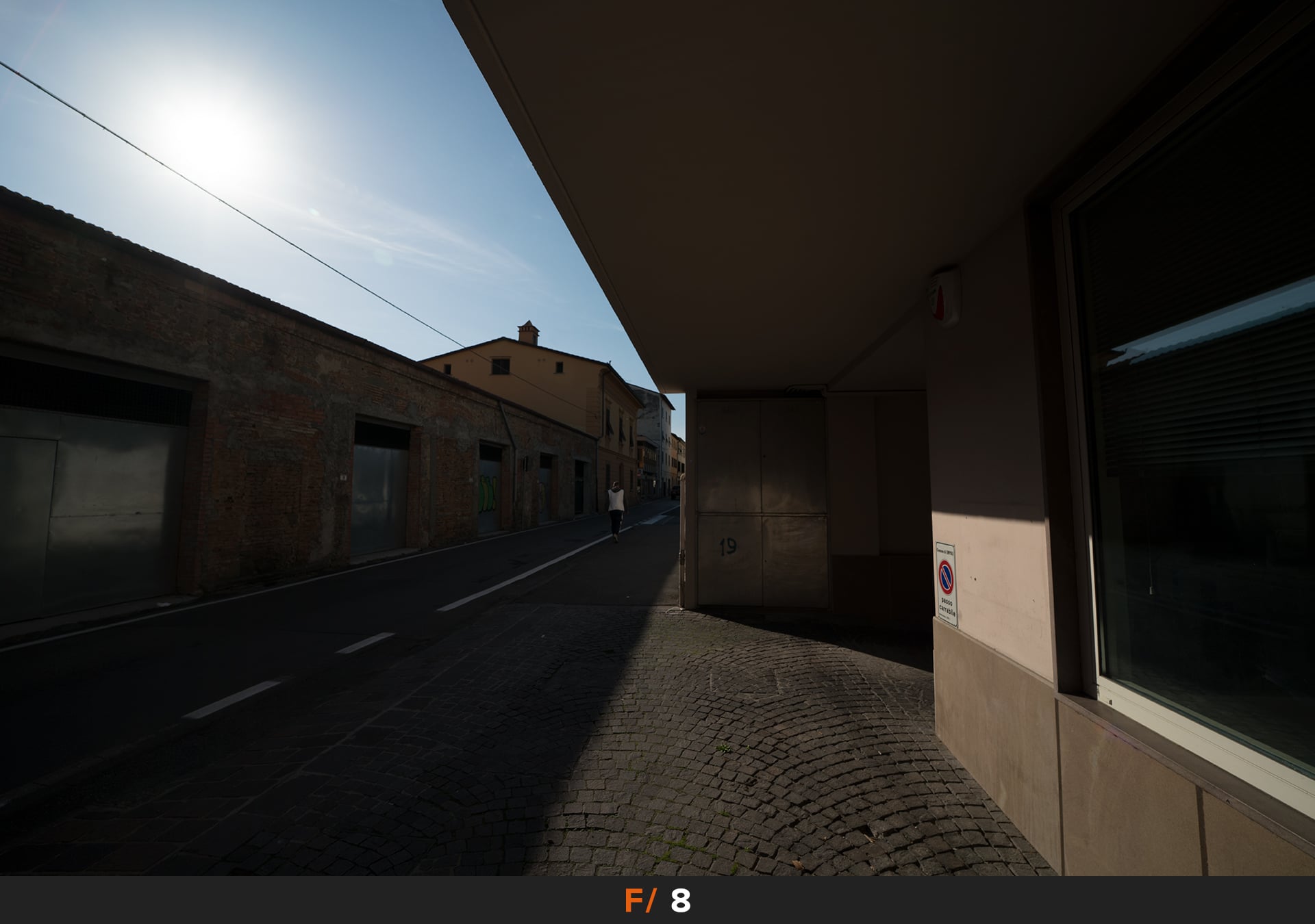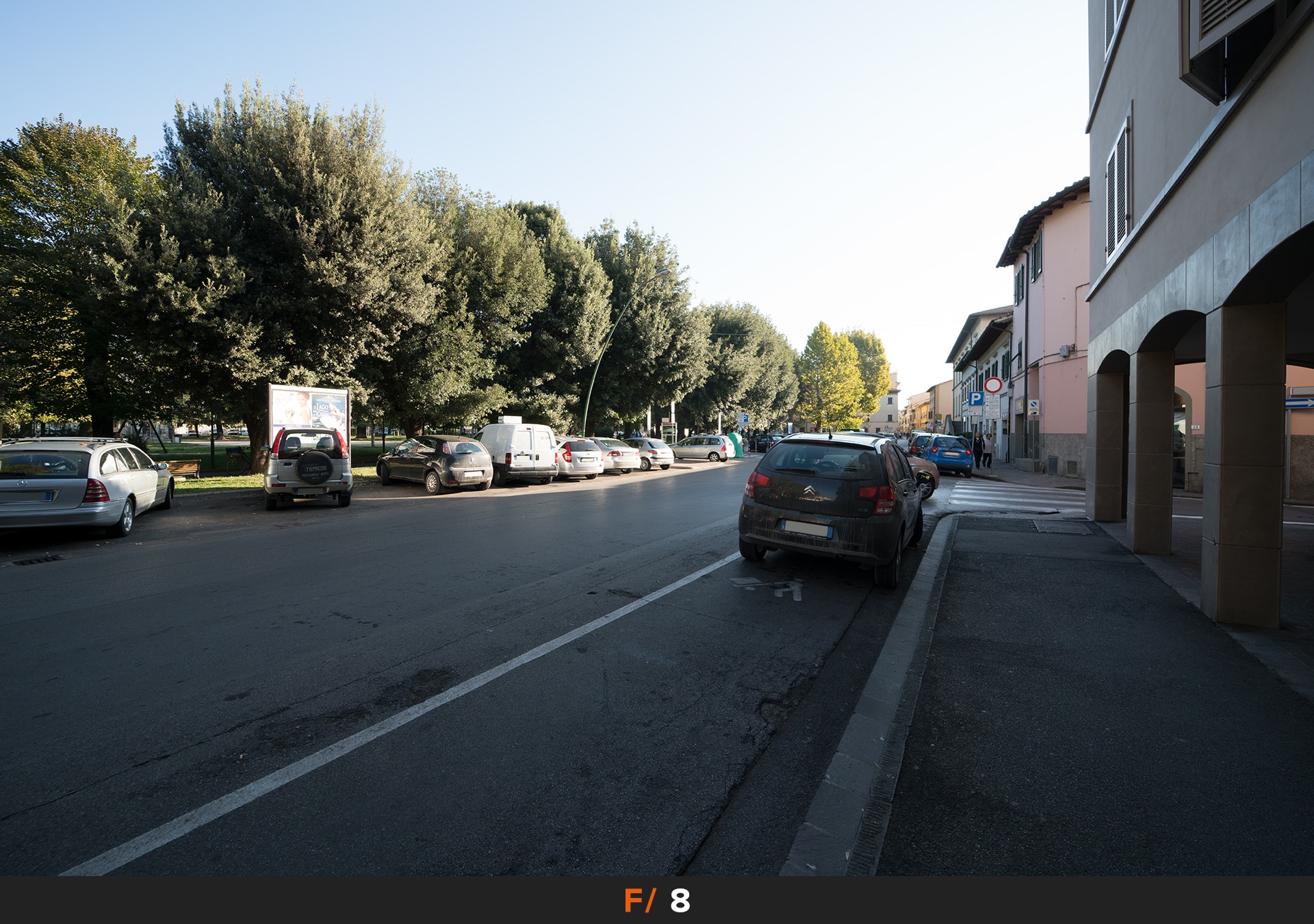 14mm è una lunghezza focale molto corta, dall’angolo di campo molto ampio, e quindi dalla distorsione evidente. Come infatti potete vedere dall’immagine di test le linee vengono deformate, dando vita ad una distorsione a barilotto. Distorsione comunque piuttosto lieve per il tipo di lunghezza focale e quindi semplice da correggere, sia con la compensazione automatica della fotocamera sia con programmi di fotoritocco come Lightroom.