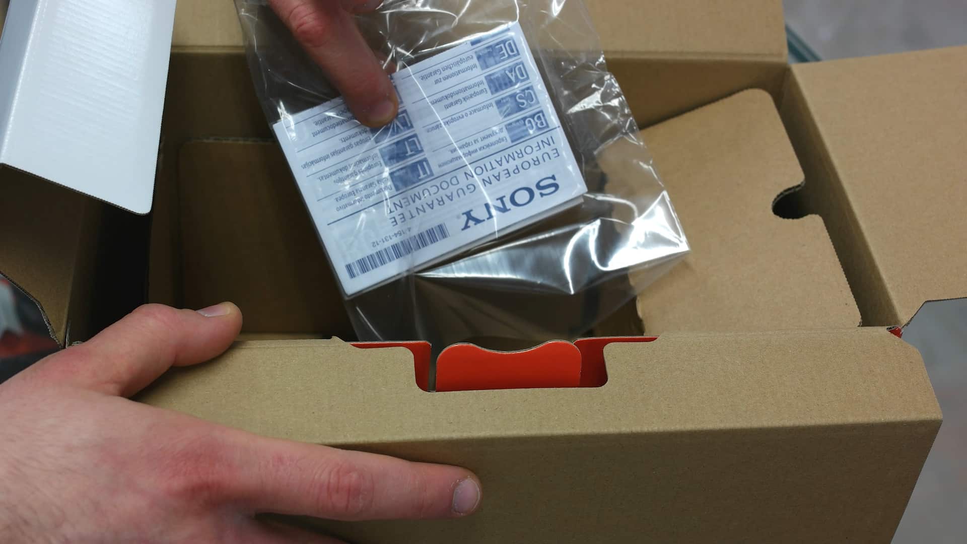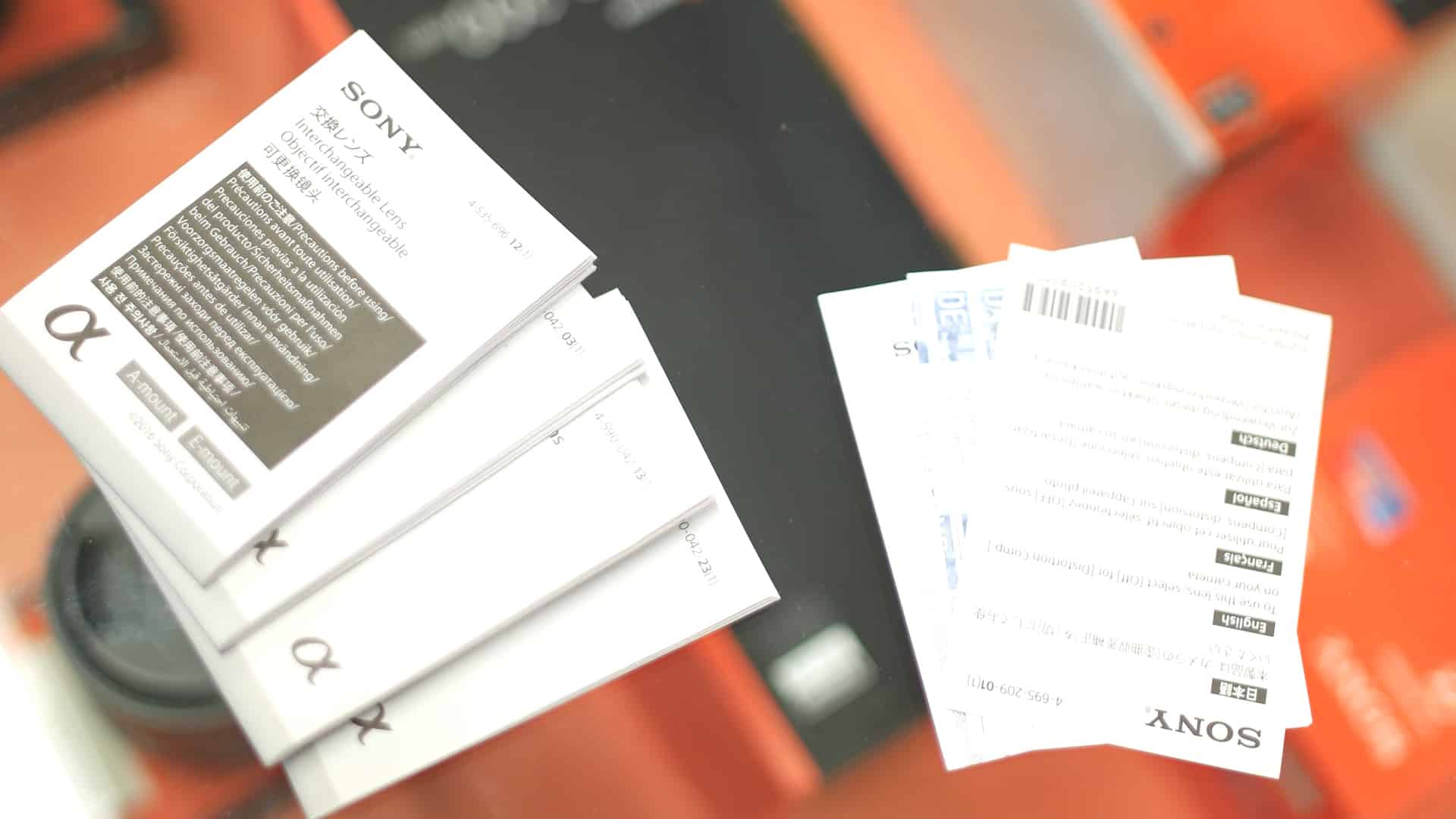 Alla sinistra dell’obiettivo invece abbiamo la manualistica e tutti i vari documenti che accompagnano un obiettivo, come la carta di garanzia.